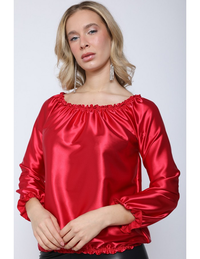 SAMATHA Szatén Gumis Vállú Felső - Piros