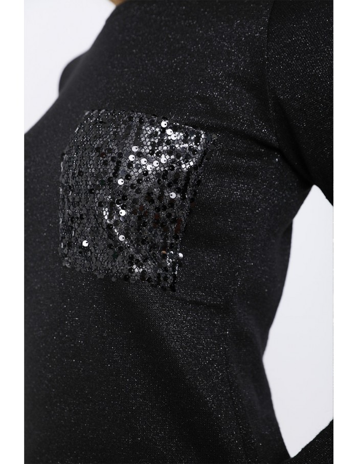 BRAELLYN Kötött Felső Flitteres Zsebbel - Fekete