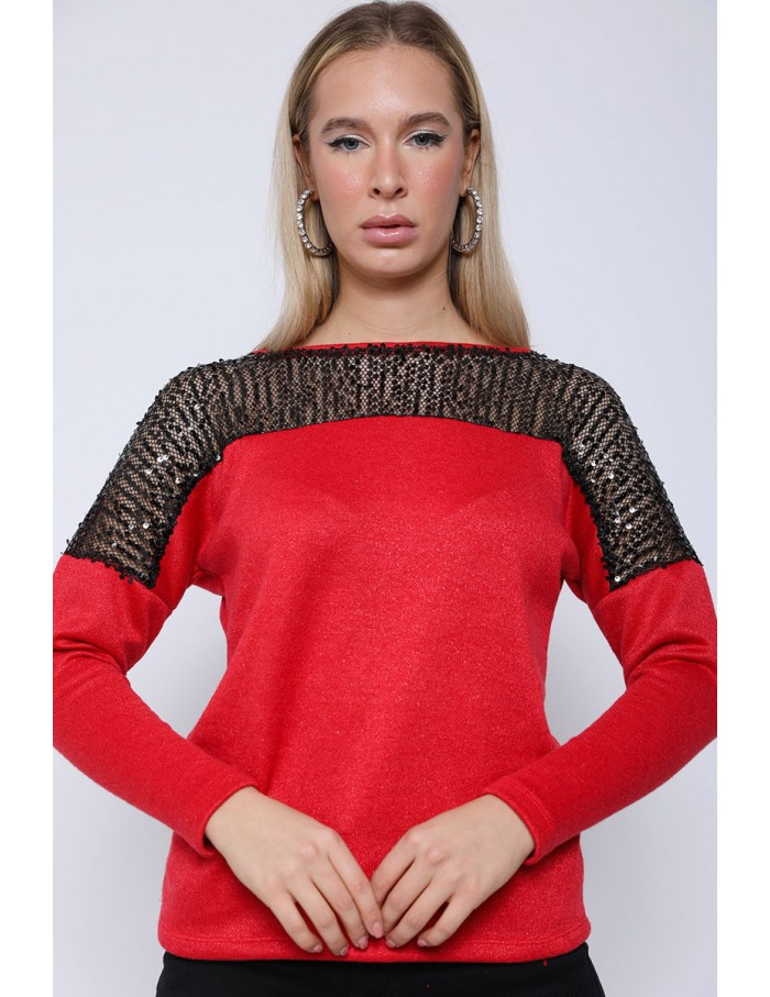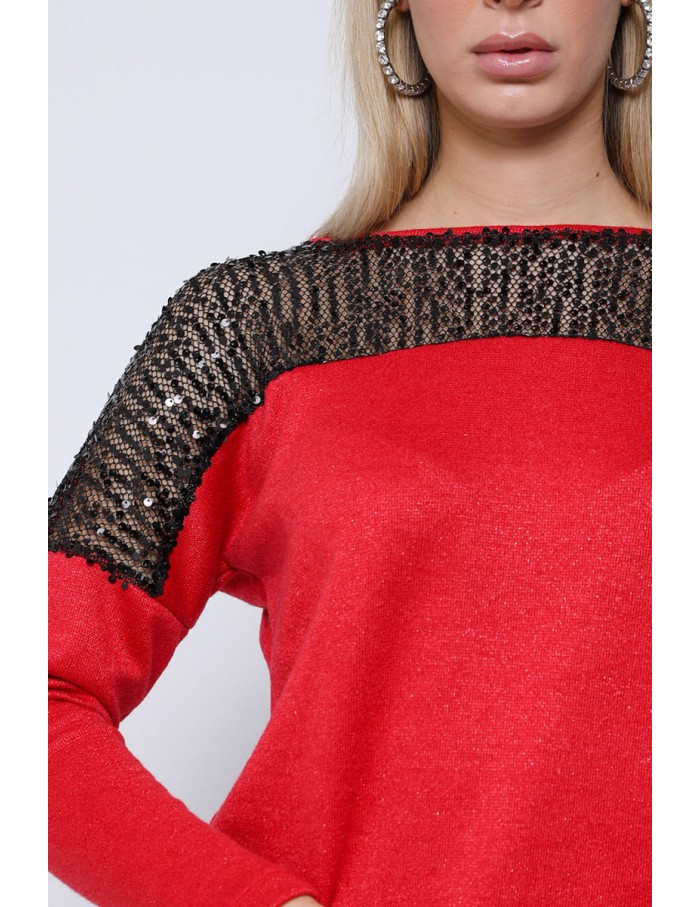KAROLINA Flitteres Kötött Pulóver - Piros