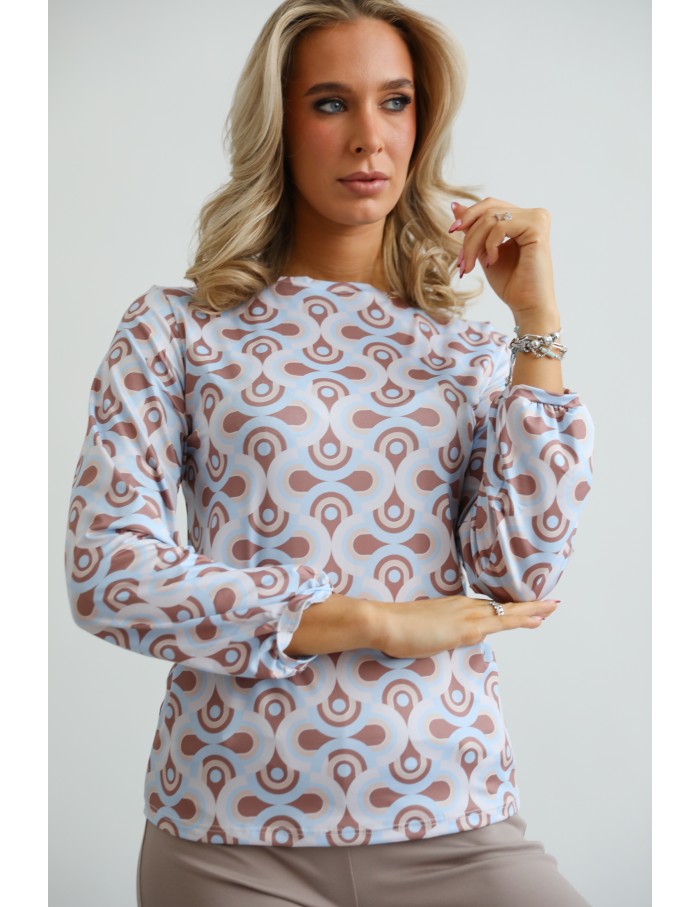 ZINA Mintás Felső - Világoskék-Barna