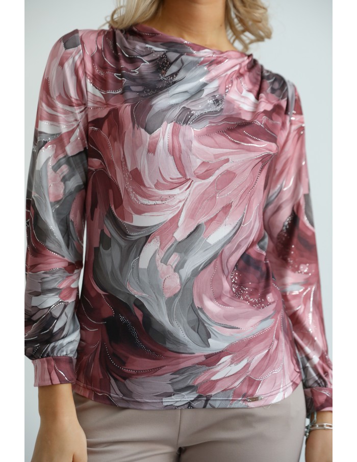HELENA Mintás Felső - Bordó-Szürke